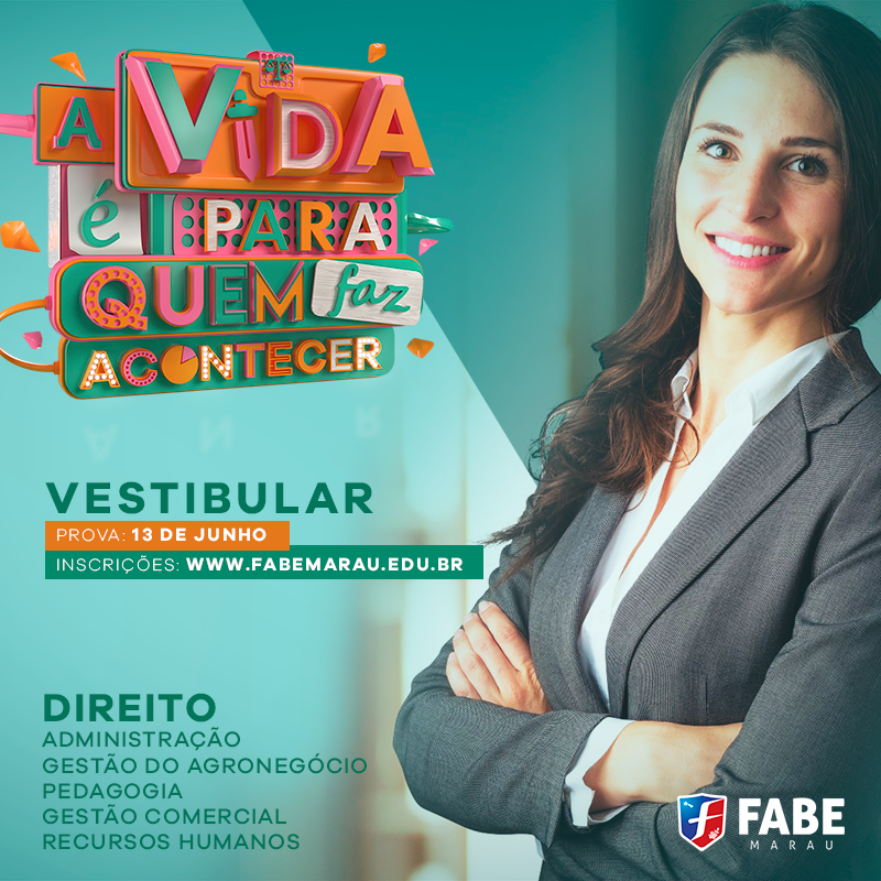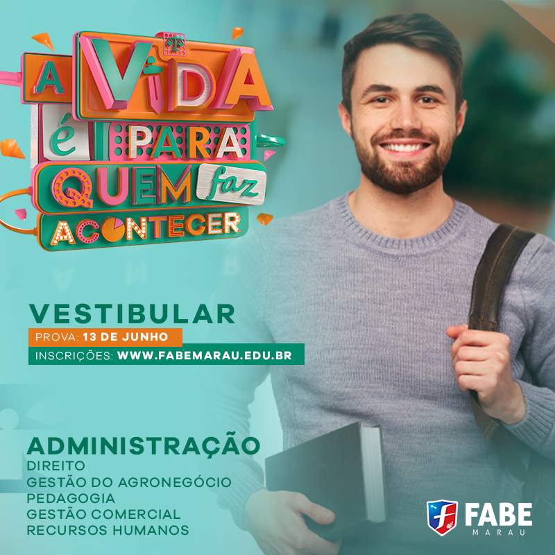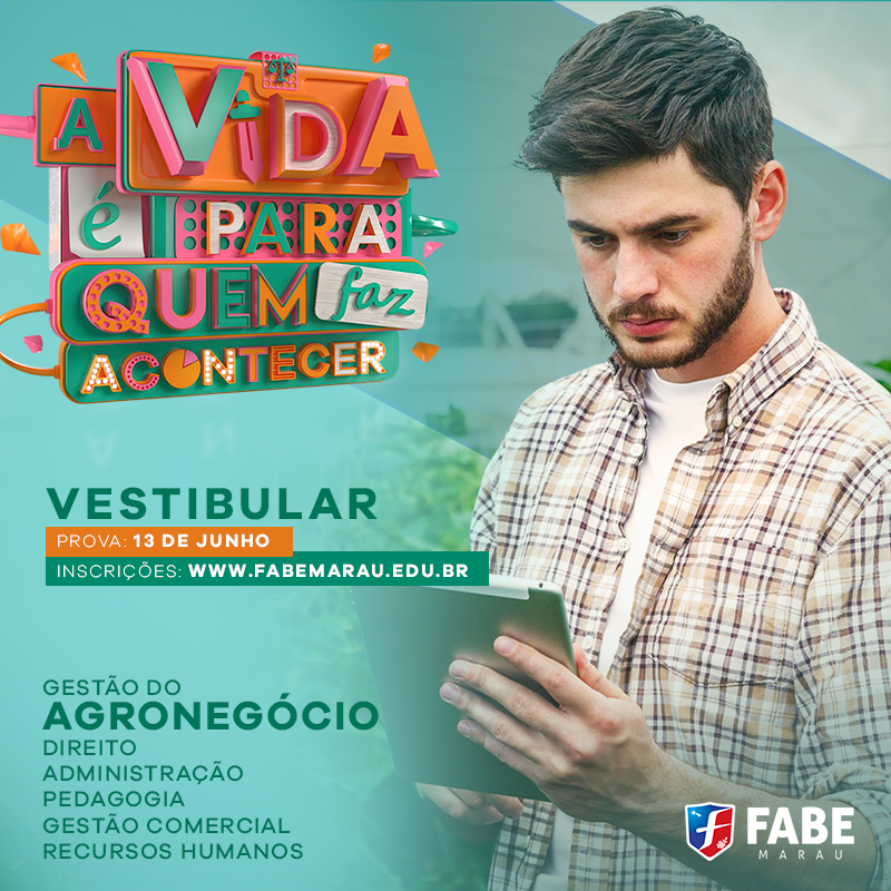 A Faculdade da Associação Brasiliense de Educação – FABE está com inscrições abertas do vestibular de inverno de 2019. Com a proposta “A vida é para quem faz acontecer” inspirando a formação de profissionais diferenciados o processo seletivo oferece vagas para os cursos de Administração, Direito e Gestão do Agronegócio. A instituição oferece os cursos de Pedagogia, Gestão Comercial e Gestão de Recursos Humanos.