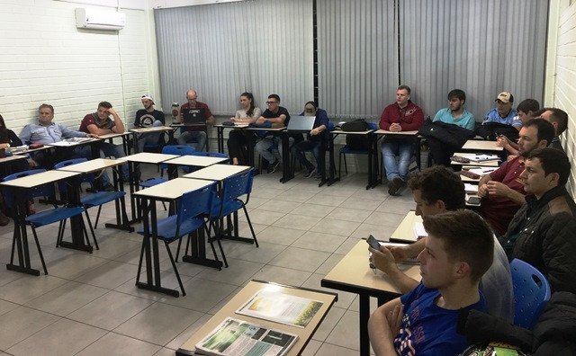 Acadêmicos do Curso de Gestão do Agronegócio da FABE participaram na noite desta quarta-feira (12) de palestra sobre Comercialização de Precisão com a Analista de Mercado, Claiton Santos de Passo Fundo. Na oportunidade, foram abordados diferentes pontos, ou seja, lógica dos preços, tendências do mercado, como formar os preços, identificar os riscos, quando vender e planejamento comercial. A iniciativa fez parte da atividade da disciplina de Cadeias Produtivas do Agronegócio, ministrada pela professora Janielen Pissolatto Deliberal. Segundo ela, a intenção foi proporcionar acesso em informações do contexto de comercialização de grãos com profissional especialista na atividade.