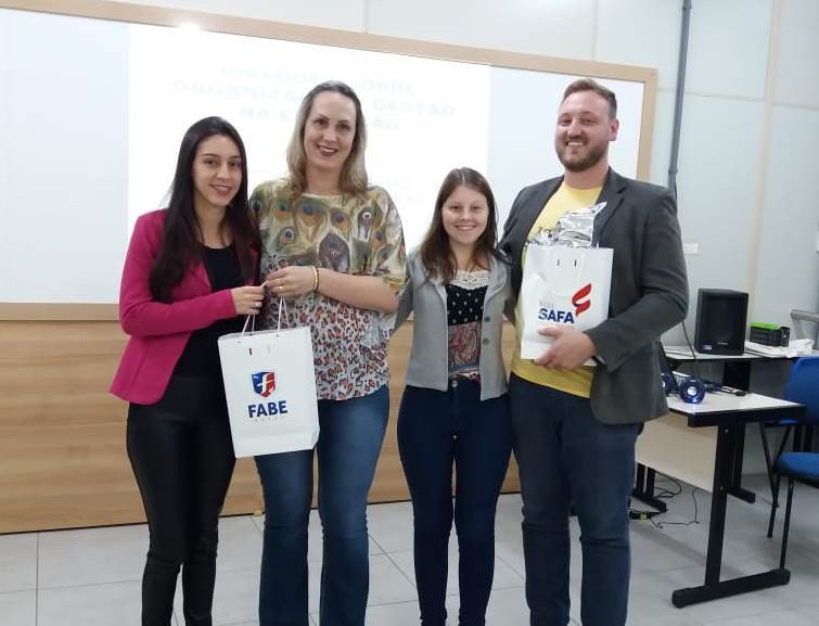 Secretários Municipais de Educação de Marau e Casca estiveram na noite desta quarta-feira, 30 de outubro na FABE para promover dialogo sobre organização e a gestão da educação em nível municipal. A atividade aconteceu no Curso de Pedagogia, através da Disciplina de Organização e a Gestão da Educação, da professora Jeci Bisolo. Na oportunidade participaram do encontro a Secretária Municipal de Educação e Coordenadora Pedagógica de Marau, Simone Costenaro Ribeiro e Maikyeli Orsato Decesaro e do Secretário de Educação e Cultura de Casca Nathan Pastre.