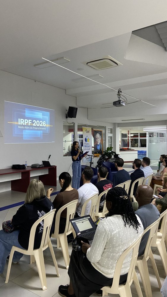 A programação iniciou com a contadora e professora universitária Miriam Frosi, que abordou a obrigatoriedade da declaração do IRPF, explicando quem está sujeito à entrega e destacando a importância de contar com profissionais qualificados para a realização correta do procedimento. Na sequência, o contador Joel Migliorini conduziu uma apresentação prática sobre a destinação do imposto, demonstrando diretamente no programa da Receita Federal como realizar o processo de forma simples e segura.